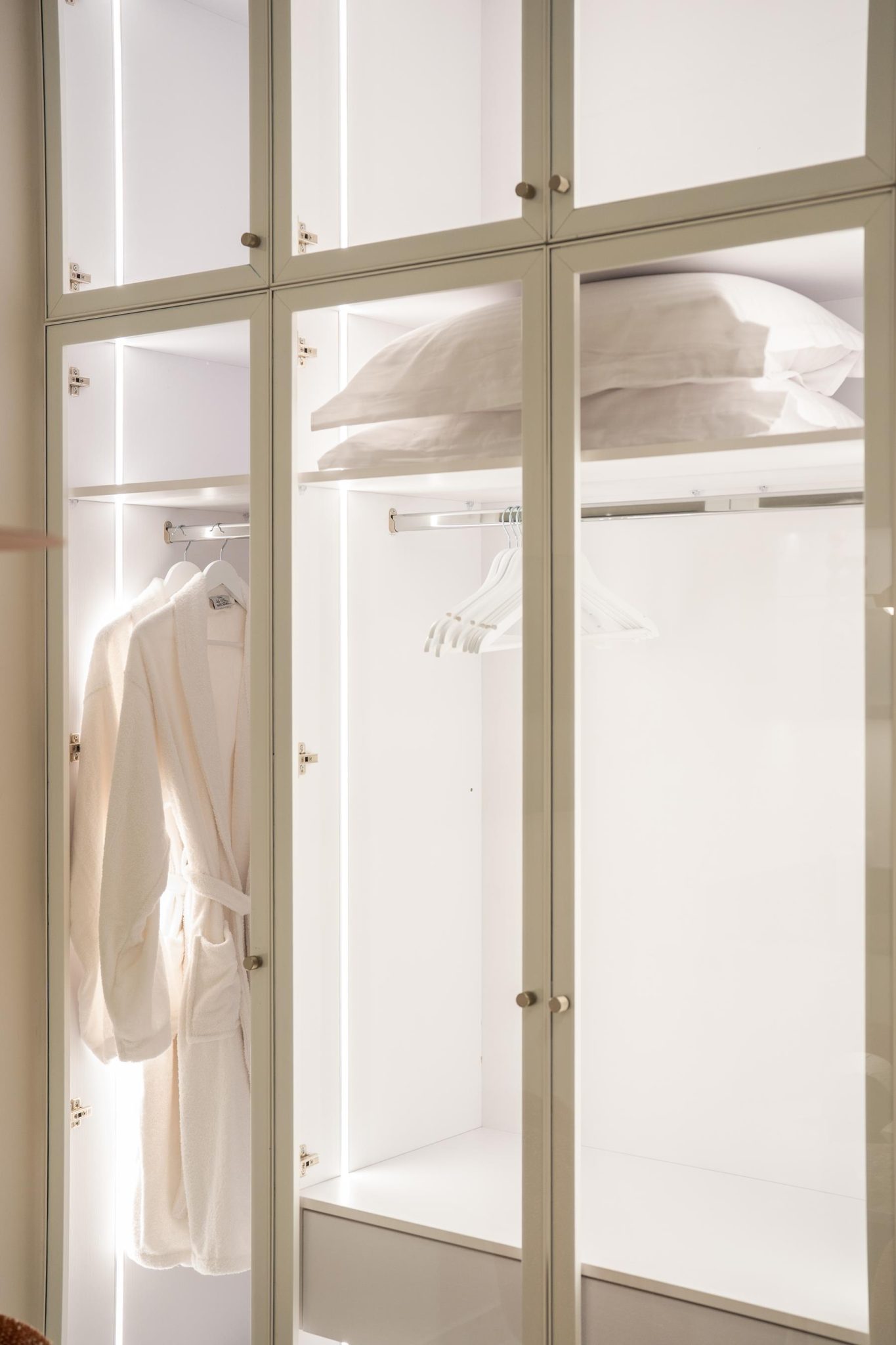 The layout of this suite is a single space that combines a large bedroom with a living room. It is furnished with all the necessary amenities, such as a king size bed, two sofas that convert into beds, a spacious wardrobe, a bedside mirror, a desk, a small coffee table, a smart TV, kitchen furniture with a sink and a small round table. The bathroom has a shower cabin and a modern design that allows guests complete privacy and comfort. It is decorated with a spacious mirror and porcelain sinks.